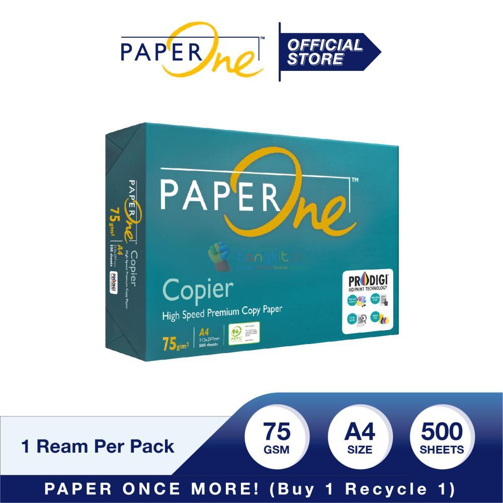 Tipe terbaru dari PaperOne dengan gramasi 75gram.Ramah lingkungan – 100% berbahan serat dari perkebunan bersertifikat PEFC (Info lebih lanjut, silakan kunjungi www.pefc.org)Ketebalan tinggi - Memungkinkan pencetakan dupleks (dua sisi) dengan nuansa kertas yang baikOpacity tinggi – Tidak tembus pandangTingkat keputihan kertas yang tinggi - Kontras dengan kejelasan cetak yang tajamKelembutan tinggi - Kualitas cetak yang tajam, segar dan jelas dengan nuansa kertas yang halusTepi potong yang presisi - Performa bebas masalah, dan bebas macet (junk pada printer)Teknologi Cetak HD ProDigi™ - Peningkatan teknologi permukaan untuk pencetakan warna inkjet/laser yang lebih baikSangat cocok digunakan untuk laporan kantor, buletin, salinan proposal, grafik, memo, resume, tesis, esai dan surat, dll.Ukuran : A4Gramasi : 75 gsm ( Copier Paper )Size CM : 21,0 X 29,71 Ream